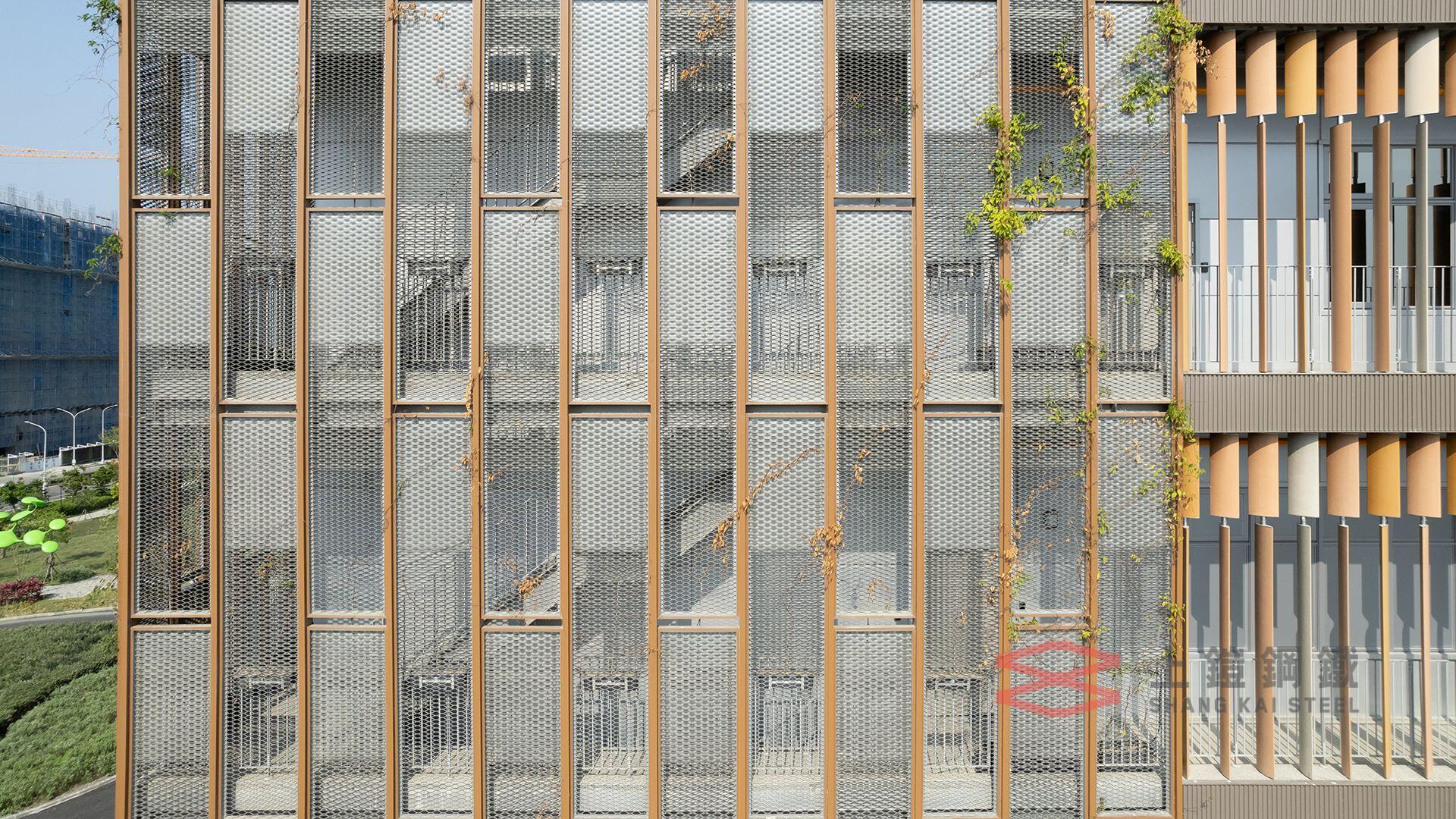 近年、私たちは数々の環境に配慮したプロジェクトに携わることができ、大変誇りに思っています。例えば、台湾南投にある「経済部台湾中央イノベーションキャンパス」は、台湾グリーンビルディングのダイヤモンドグレード基準とインテリジェントビルディング基準に準拠しています。バイオアーキテクチャーのフォルモサナ(bioarch)が設計したこの建物は、金属ガラスカーテンとアルミエキスパンドメタルメッシュを外部サンシェードとして採用しています。この設計は、自然採光を確保するだけでなく、様々なサンシェード要件に応じて太陽放射熱を効果的に遮断します。柔軟な曲線と密度により、自然の景観が建物にシームレスに溶け込み、スマートなグリーンビルディング設計技術を採用しています。