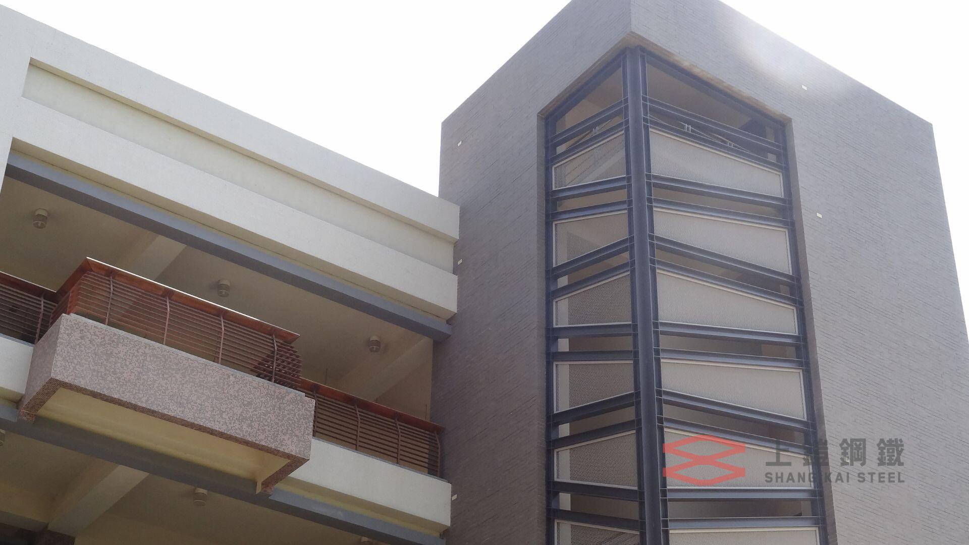2. 建物の断熱性と省エネ効果の効果的な向上:台湾中部サイエンスパークにある国立実験高校では、夏季は高温と強い日差しが一般的であるため、建物の断熱性と省エネ効果が重要な課題でした。建築家は、階段と廊下にShang Kai SteelのSKAエキスパンドメタルメッシュを選択しました。日照条件を評価した後、Shang Kai Steelのエンジニアは最適なメッシュ角度と開口部を計算し、太陽熱を遮断しながら自然採光と換気を維持し、室内を涼しく快適に保ちました。これは、良好な学習環境に不可欠です。